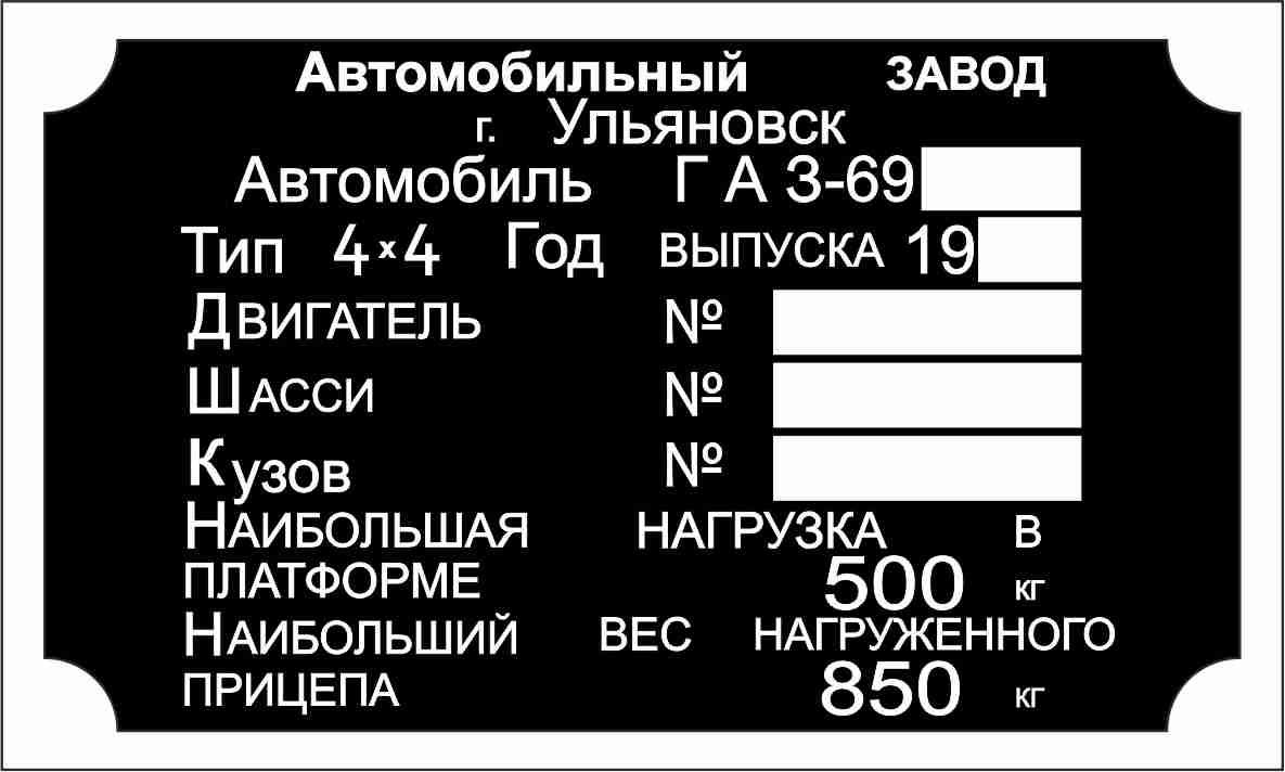 Шильд (Двублива табличка) на ГАЗ-69 (1952-1972 рр.)